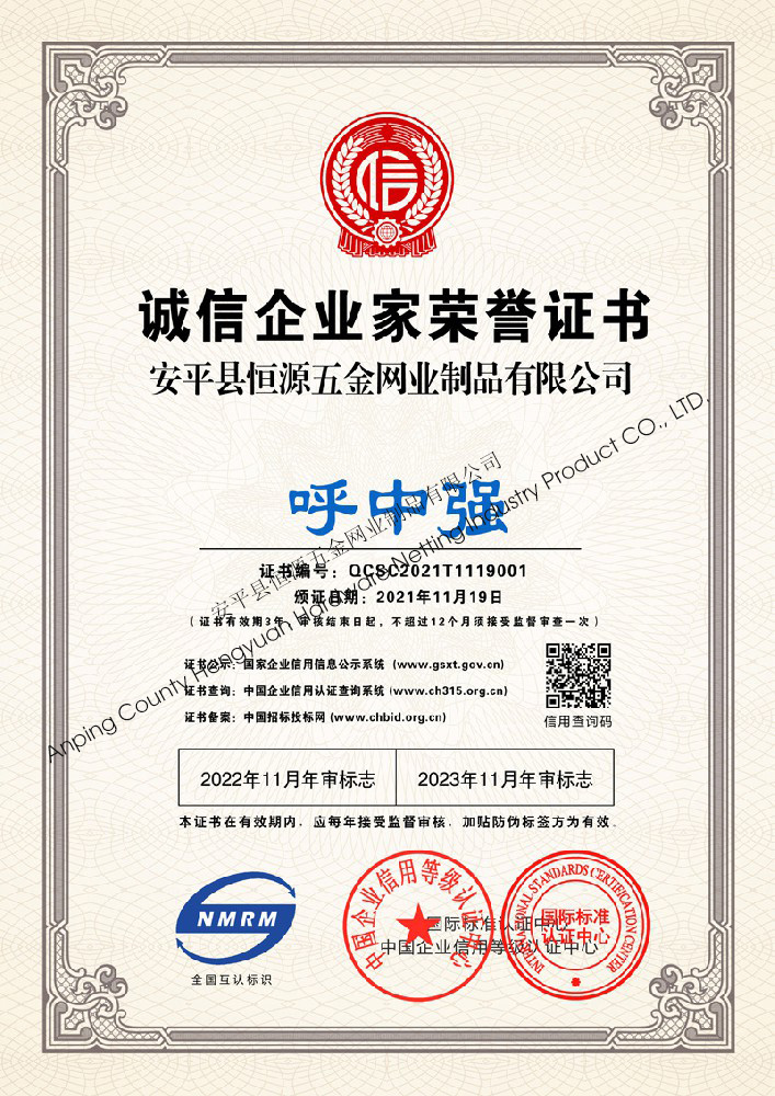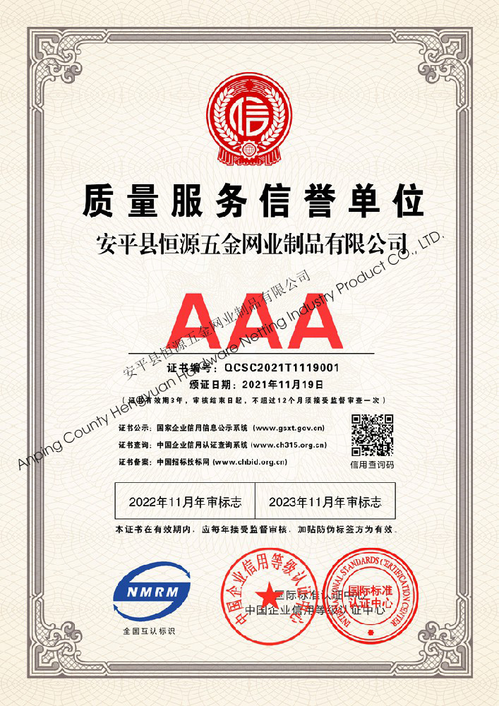 多年來,安平縣恒源五金網(wǎng)業(yè)制品有限公司堅持“科技興企、質(zhì)量立業(yè)”的經(jīng)營理念和“誠心為本、客戶至上”的合作宗旨,優(yōu)化生產(chǎn)工藝,打造優(yōu)質(zhì)產(chǎn)品,提供完善的服務(wù),受到國內(nèi)外客戶的一致好評,產(chǎn)品行銷全國各地,并出口美國、德國、韓國、日本、臺灣等國家和地區(qū)。